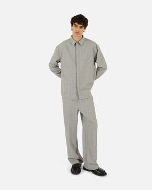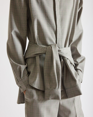 Tailored wool-blend shirt with a pointed collar, covered placket, curved hem, and back yoke. Lightweight structure makes it ideal for layering. Materials 50% Wool, 50% Polyester Care Do not wash. Do not bleach. Do not tumble dry. Iron cool. Dry clean only. Description A classic button-down shirt in a wool-blend plaid, finished with a pointed collar and clean detailing.