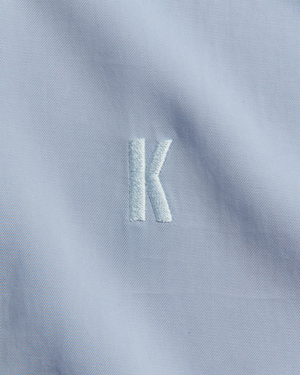 Smooth Tencel shirt with a pointed collar, curved hem, and clean silhouette. A subtle embroidered "K" at the front adds a quiet branded detail. Materials 100% Tencel Care Do not wash. Do not bleach. Do not tumble dry. Iron cool. Dry clean only.