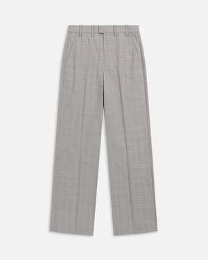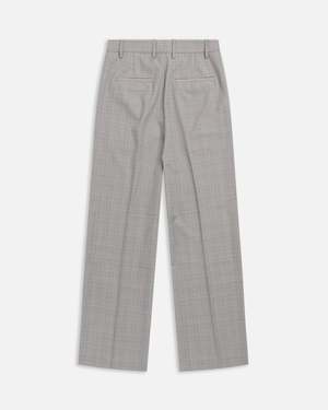 Straight fit trouser crafted from a soft wool blend with an easy drape. Designed with slanted side pockets, tailored welt pockets at the back, and an extended hook-and-bar closure for a polished finish. Materials 50% Wool, 50% Polyester Care Do not wash. Do not bleach. Do not tumble dry. Iron cool. Dry clean only. Description Relaxed, wide-leg trousers crafted from a wool-blend plaid with clean tailoring and everyday structure.
