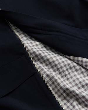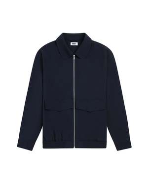 The Eco Combo Zip Jacket from KROST, New York. Details Relaxed silhouette cut from a smooth recycled-poly blend with subtle structure. Designed with a full front zip, oversized flap pockets, functional welt pockets, and an elastic waistband for ease. Contrast lining and button cuffs finish the piece with thoughtful detail. 80% Recycled Polyester, 18% Viscose, 2% Elastane Imported.