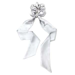 Soft to the touch, our silk charmeuse scarf scrunchie features a removable scarf detail. Perfect for styling your hair into a bun, a ponytail, or wear the scarf separately as a headband.