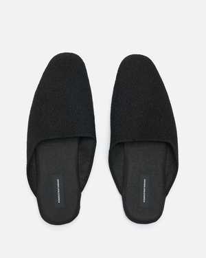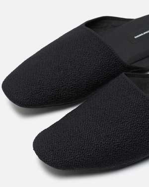These squared-off mule slippers are made from Vidar 4, a tightly woven deep-textured boucl wool blend, with a cotton lining and faux suede sole. Product SKU: 520083-1880 Model measurements / Fit - Standard fit, narrow - Italian men's sizing - S: 3738 (25 cm) - M: 4041 (28.02 cm) - L: 4243 (30.05 cm) Product features - Slip-on style - Cotton lining - Faux suede sole - Embroidered logo2 patch on insole Product composition - 96% worsted wool, 4% nylon - Made in Italy