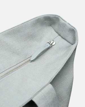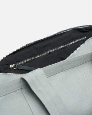 Kvadrat/Raf Simons Technicolor Fleck Tote Bag in Grey. This all-purpose bag was created in tandem by Raf Simons and Peter Saville, produced in a limited edition of 200. The bag is crafted from worsted English wool and features reinforced handles, a main compartment with zip closure, and an interior zip pocket. Additional features include leather pulls, a front patch pocket, an embroidered logo2 patch at the face, and a lined interior.