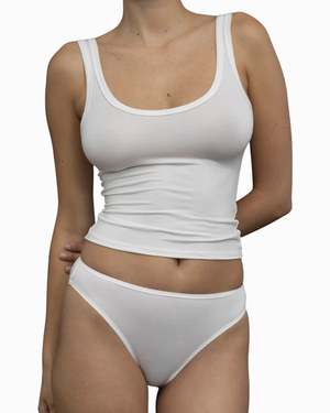A fresh perspective on a classic layer. The Recline Tank features a gentle scoop neck, fitted silhouette, and perfect hip length. Made from a luxuriously soft, environmentally-conscious bamboo. Named for Mies Van Der Rohes Reclining Chair series as an ode to moments of calm in your everyday. Material 95% Bamboo, 5% Spandex Color Natural Size Bust, Waist, Hip 0: 31, 23, 34 1: 32-34, 24-26, 35-37 2: 35-36, 27-29, 38-40 3: 37-39, 30-33, 41-43 4: 40-43, 34-36, 44-46 Origin Made in Los Angeles