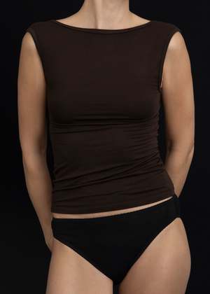 An elegant wide boatneck tank with a fitted silhouette throughout and perfect hip length. Made from a luxuriously soft, environmentally-conscious bamboo blend. Material: 95% Bamboo, 5% Spandex Color: Espresso Origin: Made in LA