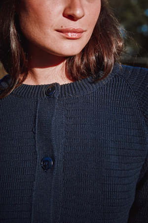 Round-neck cardigan individually knitted to order in family-run workshops in Spain.