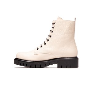 BRAND L'Intervalle focuses on quality, well crafted, fearless and fashion-forward designs. They offer exclusive and ethically sustainable products from Spain, Italy and Brazil. With over 20 years of international footwear experience, their team has positioned itself in the fashion industry by offering outstanding quality while remaining in an affordable price range hence the name L'Intervalle. DESCRIPTION This platformed leather combat boot is lace up with a round toe. It is great for fall and winter to stay warm and fashionable. DETAILS - Leather Padded Insole & Lining - Pull Tab at Back - Stretch Gusset - 1.75" Heel - Made in Spain