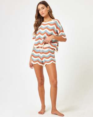 LSPACE | Knit Shorts in Del Mar Stripe Have fun with playful knits. Like its matching top, the Make Waves Short has a scalloped hem with a high waist and features a draw cord detail. - High waist - Scalloped hem - Drawcord through waist - Sweater knit - Size XS-XL - 100% Cotton - Like all delicates, shape, color and fit are best preserved if hand washed in cold water. Lay flat to dry. - Style # MAKSH24 - Model Measurements: - Anna, size S - Height 5'9, Bust 32", Waist 23", Hips 34.5"