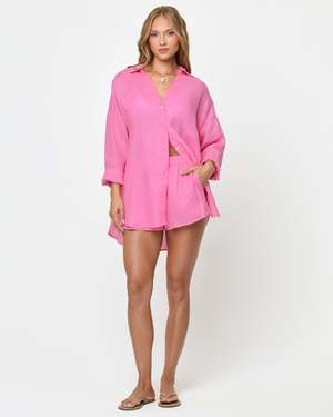 These linen pull-on shorts are the epitome of classic style. An adjustable tie waist and pockets are just a few of the reasons we keep reaching for these closet staples. Pair them with the matching tunic in the latest drop of "Hottest Pink" for a polished yet relaxed set. - Pull-on shorts - Adjustable tie waist - Side pockets - 100% linen - Style # RIOSH23