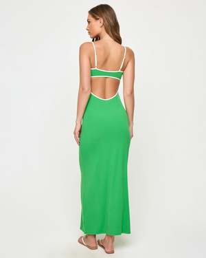 The Jordana Dress in Clover Cream by L*Space is a form-fitting, ribbed midi dress designed to show off your figure. This ankle-length style features a scoop neckline, adjustable spaghetti straps, and a standout cutout detail at the back. - Midi length - Ribbed fabric - Spaghetti straps - Adjustable straps - Cutout at back - 95% Viscose, 5% Elastane - Style # JORDR25