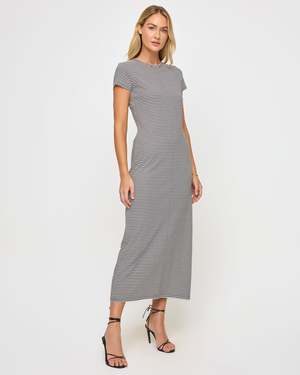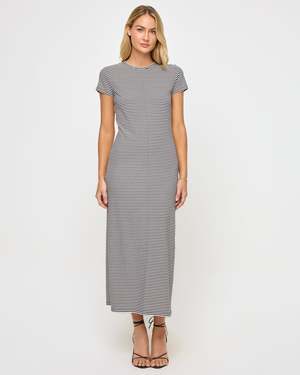 The Sloane Dress from L*Space has an ideal mix of casual and comfort. This dress features cap sleeves, a crew neckline, and a midi length. Pair with sneakers for an on-the-go look. - Midi length - Crew neckline - Front seam - Cap sleeves - 100% cotton - Style # SLODR25