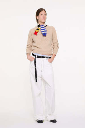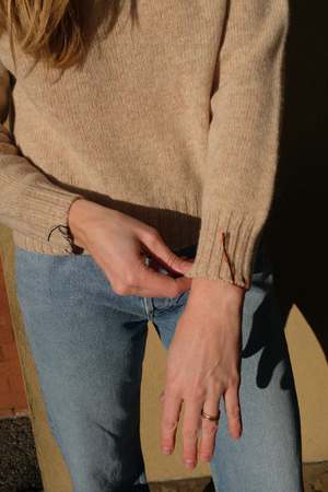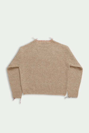 Crew neck sweater with ribbed details at the hem, neckline, and cuffs. Hand-embroidered in the LA FETICHE Glasgow studio using surplus yarns. Details: - 100% supersoft Shetland wool - Made in Scotland Care: When washing, use lukewarm water and a mild non-bio detergent. Adding a touch of hair conditioner will help restore softness and sheen. Gently submerge and swirl the knit, then press out the excess water without twisting or spinning, as this can cause felting and shrinkage. Lay the garment flat on a towel or clean surface to dry, reshaping it carefully. Avoid hanging, as the weight of the water can stretch the fibres. If needed, iron on a low setting, placing a thin cloth between the iron and the knit. To keep your sweater looking its best, we recommend using a fabric shaver or a sweater stone. Glide it lightly just above the surface, never pressing down, to remove only the loose fibres without damaging the knit. After one or two gentle treatments, the yarn settles beautifully and pills much less. About the brand: LA FETICHE was created by April Crichton and Orly Forestier in 2017 to make joyful, irreverent everyday clothing to treasure, blending French chic and British eccentricity and celebrating local French and Scottish manufacturing skills in collaboration with traditional artisans.
