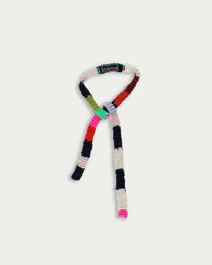 Such a chic skinny scarf. Style like you would a long necklace looks great with all your seasonal layers. Hand knit in Scotland. 100% Merino Wool.