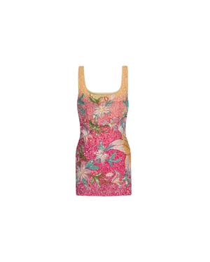 Delicate and playful mini dress that features soft floral motifs inspired by the sea, creating a breezy feminine charm. Perfect for garden parties, resort escapes, or casual chic outings, its a timeless piece full of light and elegance.