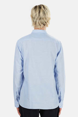 - Color: Blue Sky - Stripe textured cotton weave fabric - Spread collar - Chest pocket - Curved hem - Button front closure - 50% Viscose 38% Cotton 12% Silk - Made in Portugal - Style #: Branco - Hand wash cold Model is 6'1" wearing size M Productcode LPZMSP20-04 Designer La Paz