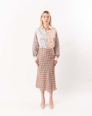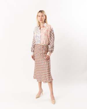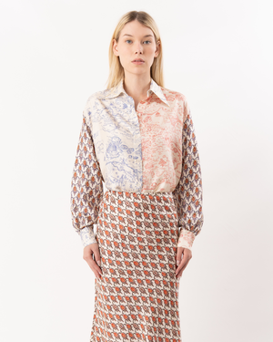 Oversized shirt with long sleeves, fully buttoned, mother-of-pearl buttons, all in silk twill. 100% silk twill. Dry cleaning only. Made in Europe.