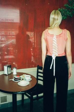 Inspired by the illustrious colour combinations of Italian marble, the Corsetto Fiammetta is made from stunning deadstock Italian taffeta with a scatlatto silk bow. Featured in Rossa Antico. This corset laces up the back as a classic corset would, and is fully boned in front and back and ties with a red silk cord at the shoulders for comfort and size adjustment according to height. High cut hips shape a flattering figure on the body, and are a perfect for different body types. We find this corset easy to slip on by oneself, if you dont have someone there to lend a helping hand for lacing. Talvi is 5'9, with a 29" waist and B cup, and wears size Medium/Large. We suggest taking your corresponding usual letter size, i.e if you wear a small choose S/M, a medium choose M/L, and a large L/XL Handmade in Rome.