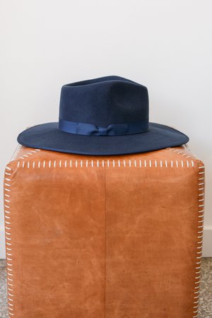 Inspired by vintage men's styles, this hat by Lack of Color is designed to make a statement. This stiffened wool fedora with a rigid crown design and trimmed navy gross grain edge with a bow ribbon detail is sure to make heads turn. - Designed in Australia - 100% soft Australian wool - Brim measures 10cm / 3.95" - Accredited with a UPF Rating 50+ - Designer: Lack of Color