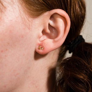 These small and lovely 14k gold plated brass post earrings measure 6mm x 9mm, perfect for versatile wear. Custom laser-cut in handwritten cursive script by Larissa Loden, this original design features a sterling silver post and butterfly ear nut. Nickel free and naturally hypoallergenic.