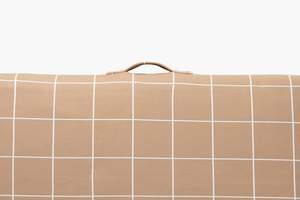 The Grid Dog Bed collectsion from Lay Lo features a refined pattern inspired by 80s Italian style and classic Scandinavian warmth. With a neutral tan color accented by simple white lines, this bed brings visual interest and structure to any room in your home.