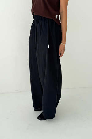 The Parachute Pant by Le Bon Shoppe in black is crafted from light yet durable cotton. Designed with an elastic waist and side pockets, its unique leg shape and third side panel add extra volume for a sculptural silhouette thats relaxed, airy, and full of movement. Measurements: - Small: Waist 12" (relaxed/flat), Waist 18" (extended/flat), Hip 25", Inseam 27", Leg opening 11" - Medium: Waist 13" (relaxed/flat), Waist 19" (extended/flat), Hip 26", Inseam 27 1/4", Leg opening 11 1/2" - Large: Waist 14" (relaxed/flat), Waist 20" (extended/flat), Hip 27", Inseam 27 1/2", Leg opening 12" 100% cotton. Made in China.