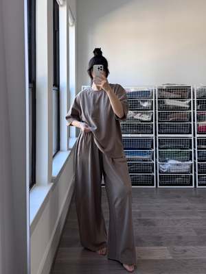Theres a new pant in town. Slouchy, oversized, and easy to dress up or down, the Bare Pants are a cool, refined take on the lounge pant. Designed with a wide leg and dart along the inseam, they create a softly curved silhouette. Borrowing the multi-side panel detail from the designer's Balloon Pants, they offer volume and ease throughout the entire leg. - Chocolate color - Loose fit - 100% Cotton Heavy Weight Low Gauge - True to size - Measurements across the front - - Small (Waist relaxed 12.5", Hips 25", Rise 11", Inseam 28") - Medium (Waist relaxed 13.5", Hips 26", Rise 11.25", Inseam 28.25") - Large (Waist relaxed 14.5", Hips 27", Rise 11.75", Inseam 28.5") - Machine wash cold, hang/lay flat dry for best result - Model is 5'6" wearing Size S - Christina is 55 wearing Size M (in the Mushroom color) - SKU #LBC6253 Please note, measurements are provided to serve as a guide. We are not able to guarantee each garment's measurements as there are slight deviations due to the handmade nature of the garments.