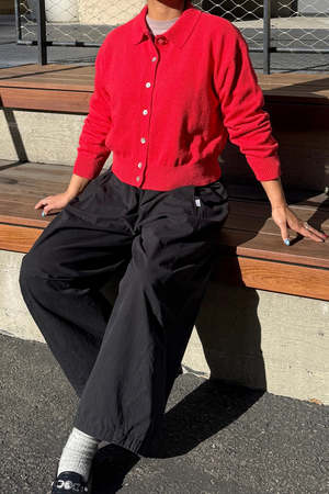 All the coziness of a knit with a light feel, the Club Cardigan is an effortless layering piece with a classic design. Made from breathable, lightweight cotton, it offers an airy quality similar to the Milo Sweater, but with a silhouette that features a gentle, fluid drape. A clean collar sits atop a functional front finished with authentic shell buttons, while an easy drop shoulder and tapered sleeves perfectly balance the slightly cropped length. The dyeing and washing process gives each garment unique character. Please allow for slight color and fit variation for each garment. Due to the nature of pigment dye, loose pigments may remain on the surface of the garments. Details 100% Cotton Hand wash in cold water Towel dry and lay flat to dry Sizing XS/S: Length 21", Chest 21 1/4" M/L: Length 21 1/2", Chest 22 3/4" Model is 5'6", Bust: 34", Waist: 27", Hip: 36" and wearing a size XS/S.