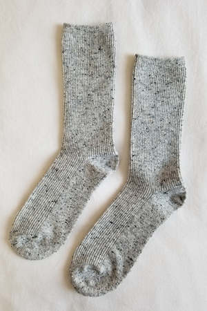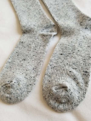 Le Bon Shoppe Snow Socks in speckled cookies and cream. 54% wool, 5% silk, 9% cotton, 22% nylon, 8% polyester, 2% spandex. One size fits most. Made in Korea.