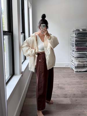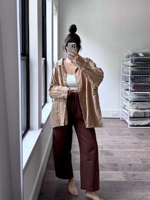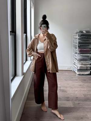The core reason for creating Le Bon Shoppe was and still is to create those everyday pieces that seem so simple and easy to wear but are hard to find. From the perfect sock to the perfect tee, all of Le Bon Shoppe pieces are forever staples that become your uniform. Offered in the most beautiful range of prismatic colors and the comfiest fabrics, they are devoted to only producing products that bring you pure joy. This is the feeling the designers have when they wear Le Bon Shoppe. Truly everything they make is what they as designers and lovers of clothing want for their own wardrobe. Being able to make their dream closet into a reality and share it with all of you is the most rewarding part of what they do. These pants have thoughtful design details like an elastic high waist that gives you a room to breath, slightly curved leg shape, cropped length to show off your favorite socks and shoes, unique side panels and deep pockets. The heavy-weight canvas material likely adds durability and gives them a structured look. The Arc pants would make a great addition to everyone's wardrobe and complement to all the Le Bon Shoppe pieces you own! - Chocolate color - 100% Cotton Heavy Weight Denim - True to size - Measurements across the front - - Small (Waist relaxed 12", Hips 22.5", Inseam 24.5", Leg opening 8.5") - Medium (Waist relaxed 13", Hips 23.5", Inseam 24.75", Leg opening 8.75") - Large (Waist relaxed 14", Hips 24.5", Inseam 25", Leg opening 9") - Machine wash cold, hang dry for best result - Model is 5'6" wearing Size S - Christina is 55 wearing Size M - SKU #LBR4253 Please note, measurements are provided to serve as a guide. We are not able to guarantee each garment's measurements as there are slight deviations due to the handmade nature of our designer's garments. Don't see what you want available? Email us at contact@shopsunchild.com!