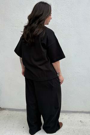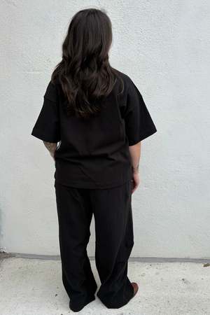 Theres a new pant in town. Slouchy, oversized, and easy to dress up or down, the Bare Pant is a cool, refined take on the lounge pant. Designed with a wide leg and darts along the inner and outer seams, it creates a softly curved silhouette. Borrowing the side panel detail from the Balloon Pants, it offers volume and ease throughout the entire leg. Details: - 100% cotton, heavyweight, low gauge - Machine wash cold with like colours, hang to dry Made in South Korea. Measurements are approximate and may deviate by up to 1 inch due to variations in the garment washing process.