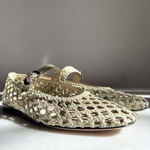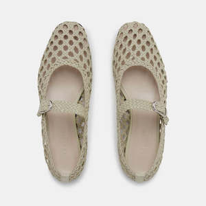 The Woven Mary Jane flats in Ecru are handwoven in goatskin with a strap fastening and a metallic buckle in an ecru shade with a khaki hue. They feature a cushioned calf leather insole. 10mm heel. Handmade in Italy. 100% Goatskin. Leather lining, insole and sole. These shoes run true to size. Le Monde Bryl simple but sophisticated styles are crafted by hand using only the finest Italian fabrics produced in some of the most antique mills in Venice, still working to this day. Closely tied to the city of the canals, the brand drew inspiration from the gondolier's friulane shoe reimagining them with a modern flair to create its signature slipper in 2016, followed by their classic Mary-Jane soon after. With a background in architecture, gemmology and jewellery, Le Monde Bryl founders Lily Atherton Hanbury and Katya Shifrin reinvented the shoes that would carry them "from meetings to museum openings - and everywhere in between" effortlessly and elegantly.