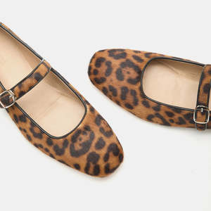 The Mary Jane is an almond-shaped toe flat handcrafted in leopard print calf hair with buckle-fastening. It features a buckle, a cushioned calf leather insole, leather piping, and a 13mm heel. Handmade in Italy. 100% Lamb leather. Leather lining, insole and sole. These shoes run true to size.