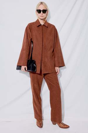 Brick Corduroy Blazer from LE17SEPTEMBRE. - Rachel is 5'10 and wears a size 2, shown in size 36
