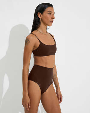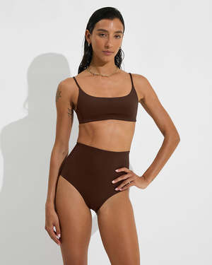 Hi Tide Bottom Size and Fit: - High waisted swimsuit bottom - Medium cut leg, medium bum coverage Fabric: - Insanely soft - Smoothing coverage - Compressive when wet and dry - Dries quickly - Fade and snag resistant - Suitable for chlorine and salt water - Machine wash, line or tumble dry - Fabric from Italy 46% nylon, 38% polyester, 16% Lycra