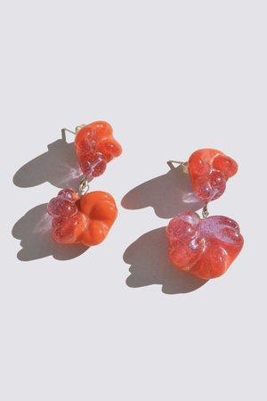 Rope knot shapes cast in cayenne and transparent lavender colored glass. Each knot is individually cast and has slight variations within each piece making every pair unique. - Handmade in Los Angeles - 1 5 / 8" in length - Glass with sterling silver connections, posts and butterfly backs