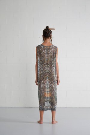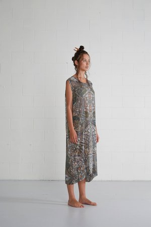 Long, relaxed fit singlet in sheer silk georgette with raw hem details. Features this seasons exclusive 'K Road' all-over print, by artist Ann Shelton from an 1980's aerial view of Auckland's iconic Karangahape Road. Relaxed fit Long length Graphic print Raw hem Silk Georgette Print Made in New Zealand
