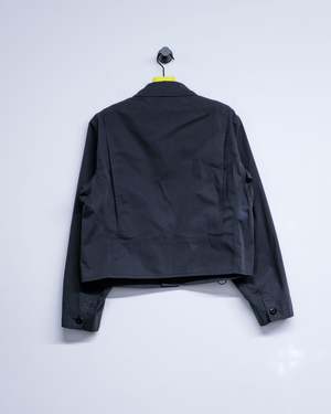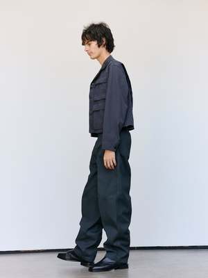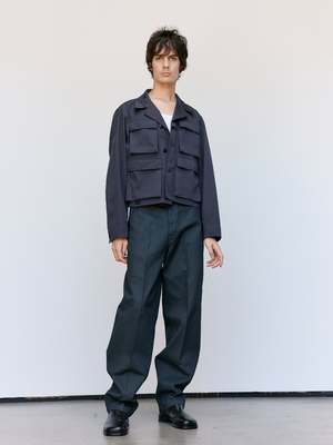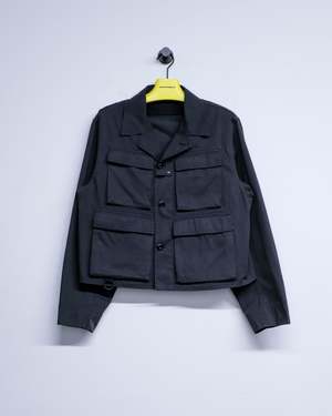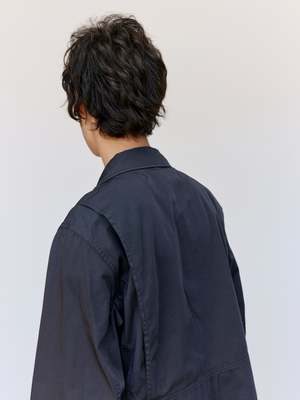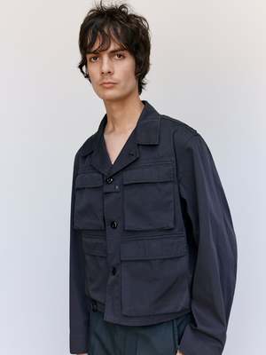 This Coal Compact Cotton Twill Short Utility Jacket features a regular fit in durable, lightweight cotton twill. Its shirt collar, long sleeves with straight buttoned cuffs, and front button closure with a snap tab ensure a classic look and secure fit. Designed for practicality, it includes gusseted front pockets with button flaps, a metal buckle, and a box pleat at the back for ease of movement. An interior neck strap allows convenient hand carry, making it a versatile and functional choice for everyday wear. Cotton Jonah is 6' and wearing a size 48.