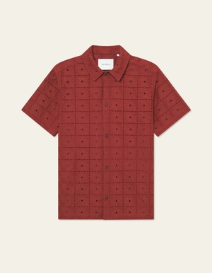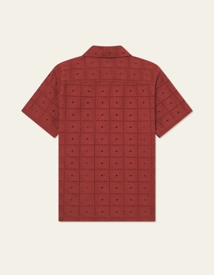 The Les Deux Hector Anglaise Short Sleeve Shirt in Fired Brick blends refined craftsmanship with effortless summer style. Made from lightweight, breathable broderie anglaise fabric, this shirt features an intricate cut-out pattern that adds texture and visual depth, making it a standout piece for warm-weather dressing. Designed with a relaxed fit, a camp collar, and a subtle embroidered logo2, the Hector Anglaise Shirt is perfect for layering over a tee or wearing solo for an elevated yet laid-back look. Whether you're heading to a summer gathering or styling it for a night out, this shirt brings a touch of European sophistication to any wardrobe.