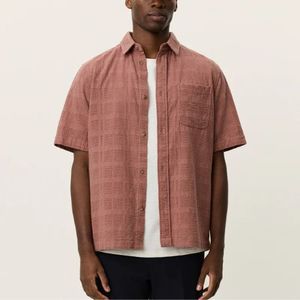 This short-sleeve shirt is crafted from breathable cotton broderie anglaise, featuring an airy openwork pattern that adds subtle texture and warm-weather comfort. Designed with a relaxed camp collar and front button closure, its finished with a practical chest pocket and a clean straight hem. Lightweight and easy to wear, the regular fit makes it a versatile piece for effortless summer styling. Made from 100% cotton.