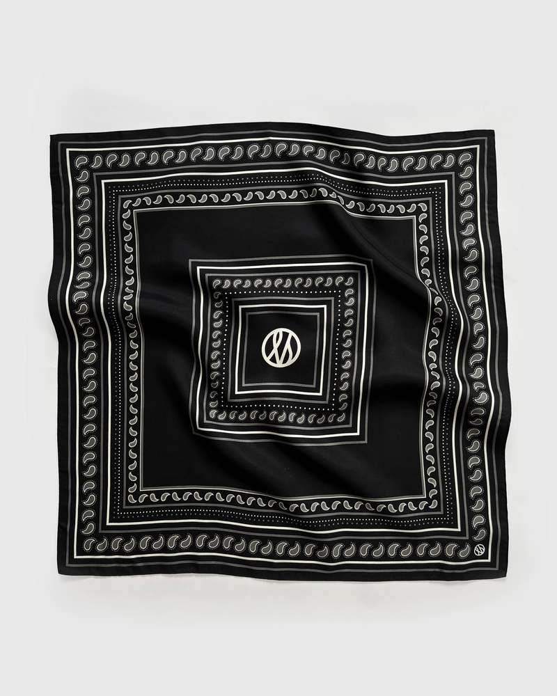 Exclusive scarves from lescarf are timeless, classy, and designed to work all year round with all kinds of garments. There are endless ways to style lescarf: drape the scarf around your neck, tie it in your hair, hang it on your bag, or wear it around your head. This silk scarf is 50 cm x 50 cm in size and features a black, grey, and white paisley print. Fabric: 100% Silk Dry clean only Steam or iron gently Country of Origin: China Measurements: 50 cm x 50 cm