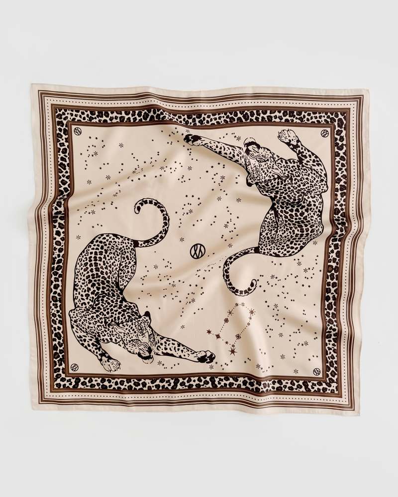 Lescarf creates timeless, classy and exclusive scarves that work all year round with all kinds of garments. This 65cm x 65cm silk scarf features a terracotta, white and black Gemini zodiac print. It can be worn around your neck, in your hair, tied to your bag or around your head. Fabric: 100% silk. Care: Dry clean only. Steam or iron gently. Measurements: 65cm x 65cm. Made in China.