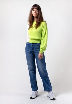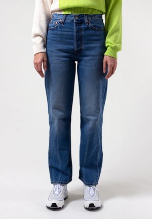 Levis Ribcage Straight Ankle - at the ready Sizing: Regular - shop to size Materials: 79% Cotton, 21% Tencel Lyocell - Sits high at the waist - Slim through the hips - Slightly cropped - Straight leg - When you want the perfect medium between baggy and skinny - Yeah, these are that! - 13oz denim - Nice and soft Dea is 5'11" and has a 26" waist. Dea wears a jumper from Paloma Wool and shoes from Nike.