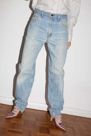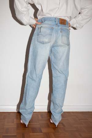 1992 orange tab, zip fly jeans in faded blue with a tapered leg. Size on label: W32 - L32 Measurements: Inside leg 32", waist 30", hips 38" Material: 100% cotton Great vintage condition with lovely fade and wear in places. Model is wearing a UK size 8 and is 5'4" tall.