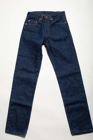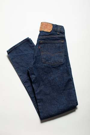 Sits right at the natural waist with a straight leg. - 100% Cotton - Zipper fly - Made in USA - Tag size: W29 L33 - Dark wash vintage denim Measurements: Waist: 27" Hip: 39" Rise: 11" Inseam: 32"