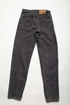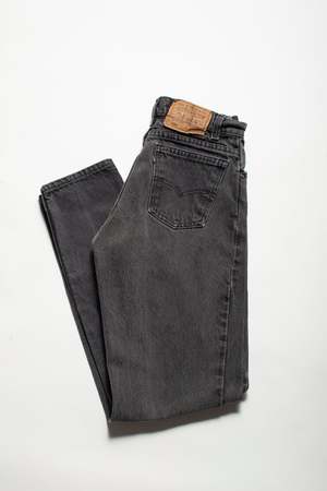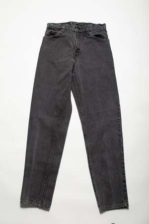 Relaxed fit. 100% Cotton. Made in the USA. Details: - Zipper fly - Tag size: W29 L32 - Faded black wash - Type: Vintage denim Size & Fit: - Waist: 26" - Hip: 39" - Rise: 11" - Inseam: 31" Age group: Adult. Tags: Vintage denim, 260114, 550, new vintage.