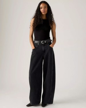 Bold shape. Big on comfort. Undeniably Levi's. The Super Baggy Barrel jeans are as comfortable as they are effortless, thanks to their easy mid rise, curved leg cut and an extra-oversized fit. Even better? We gave them archival back pockets and scooped front pockets. Super oversized jeans with a bold curved leg. Cut with an extra baggy fit. Features a mid rise. Finished with archival back pockets and scooped front pockets. With a dropped coin pocket. 95% Cotton, 5% Recycled Cotton.