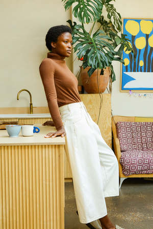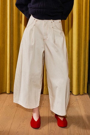 The Mason Jean is a balloon-shaped, ankle-length jean with a high pleated waist. Crafted from ecru cotton denim with contrast dark ochre stitching and matte silver rivet detailing on the pockets. Materials & Care 100% Cotton Machine wash on a cold gentle cycle with similar colours. Size & Fit Model is 5'9" / 176 cm and is wearing a size UK 8.