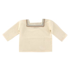 New from Liilu. Ivory organic cotton blouse with wide square cut neckline decorated with intricate embroidery. - Baby & kid's top - 100% organic cotton - Color: Milk - Long sleeves - Square neckline - Boxy fit - Gently washed in Liilu's signature scent