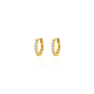 Huggie style hoop earrings measure 12mm round. Available in 18K gold vermeil. Pave setting with crystal cubic zirconia crystals. Available in sterling silver and crystal. Packaged in our signature glass bottle. Holiday jewelry perfect for stocking stuffers and Christmas gifts.