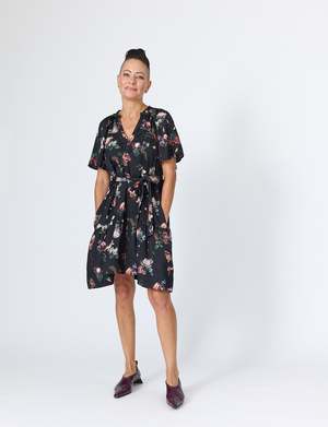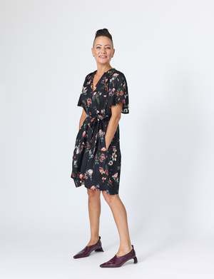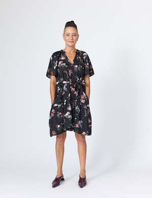 For those who adore the effortless elegance of the Joan Dress, meet its romantic counterpartthe Sarah Dress. Designed with the same signature fit, Sarah brings a touch of soft femininity with a flowing silhouette and an exclusive LiNNY floral print, created in collaboration with a Sydney-based designer. Crafted from a lightweight, fluid fabric with just the right amount of stretch, this dress drapes beautifully while offering comfort for all-day wear. Thoughtful details like pockets (yes, pockets!) and an optional self-tie belt allow for versatile stylingcinch it at the waist for a more defined look or wear it loose for effortless movement. Perfect for everything from brunch to an evening soire, the Sarah Mini Dress is a refined yet relaxed wardrobe staple designed to make a statement with ease. Fabric: 97% Polyester, 3% Spandex US Sizing: XS (0-2), S (4-6), M (8-10), L (12-14) Details: Pockets, optional self-tie belt